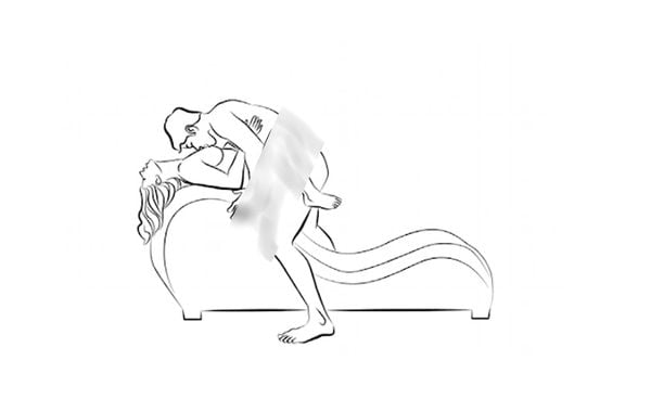 Đây là một tư thế quan hệ mang đậm tính biểu tượng về sự mạnh mẽ và kiểm soát. Trong tư thế này, người vợ sẽ chọn một điểm tựa vững chắc như mép giường, bàn hoặc tường, chống hai tay xuống và hơi khom người về phía trước. Người chồng đứng phía sau, nhẹ nhàng nâng đùi và chân vợ lên, tạo thành một góc nghiêng hoàn hảo để từ từ dẫn dắt "cậu bé" tiến vào "cô bé" từ phía sau.