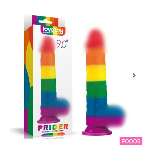 Dương vật giả dính tường Lovetoy Prider có bìu uốn cong đa chiều đa sắc 9.0"