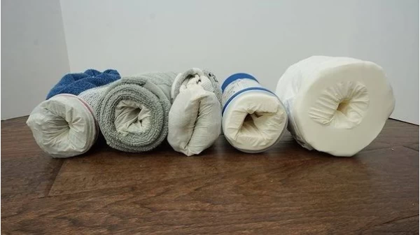 Tiếp theo, chiếc khăn bông sẽ đóng vai trò tạo ra cấu trúc và độ dày cần thiết. Bạn hãy đặt chiếc găng tay đã chuẩn bị lên giữa khăn, sau đó cuộn tròn lại một cách cẩn thận. Một điểm mấu chốt là hãy chừa lại một đoạn găng tay dài khoảng 3-4 cm không cuộn vào trong. Sau khi cuộn xong, bạn lộn ngược phần găng thừa này ra ngoài để cố định toàn bộ cấu trúc. Việc cuộn khăn cần sự khéo léo: nếu quá chặt, nó sẽ gây khó khăn khi đưa dương vật vào; nếu quá lỏng, lại không tạo được cảm giác ôm sát và "phê" như mong đợi.