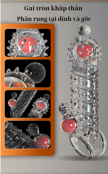 - Đặc điểm: Gai quanh thân, rung phần gốc và đỉnh bao tạo kích thích cực độ.