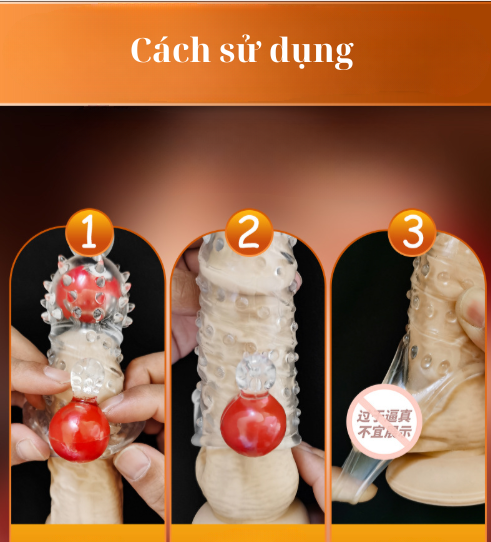 - Cách dùng: Tiến hành vệ sinh sản phẩm và dương vật sạch sẽ trước khi sử dụng. Cuộn bao lên và dùng ngón tay dang rộng bao để đeo vào khi dương vật đang cương cứng. Sau khi quan hệ, vệ sinh bao sạch sẽ bằng nước ấm hoặc dung dịch vệ sinh, sau đó bảo quản để tái sử dụng. Tốt nhất là nên dùng Gel bôi trơn để đạt cảm giác thăng hoa được thoải mái và hiệu quả.