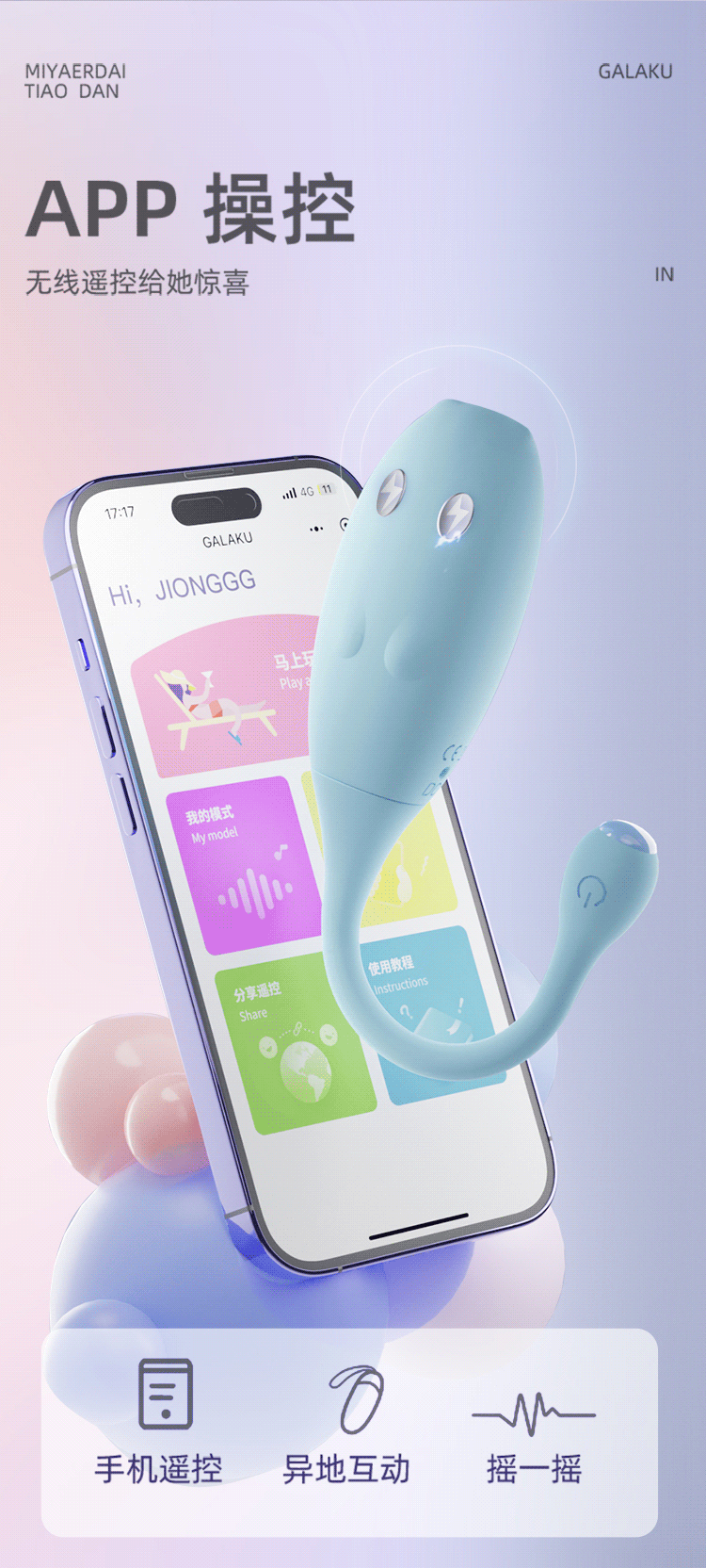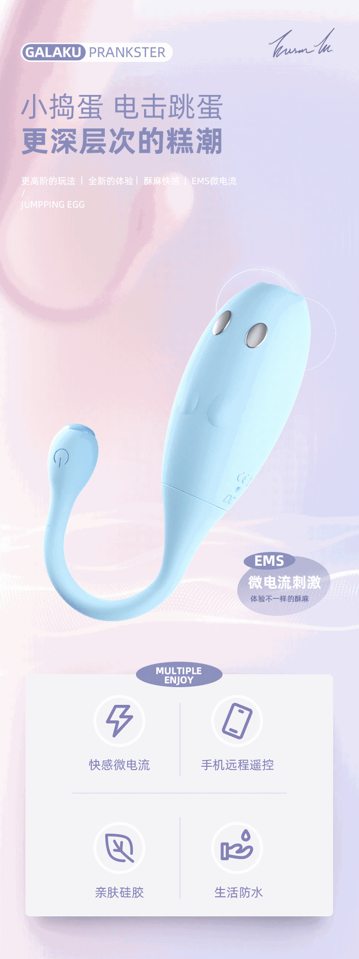 - Cách dùng: Trước khi sử dụng, cần vệ sinh sản phẩm bằng nước ấm hoặc nước muối pha loãng. Tải app Galuku, bật Blutooth và kết nối với Galaku Frankster và chọn chế độ rung như ý. Bạn cũng có thể dễ dàng chia sẻ quyền điều khiển cho đối phương để Chàng có thể yêu thương chăm sóc Bạn như đang bên cạnh.