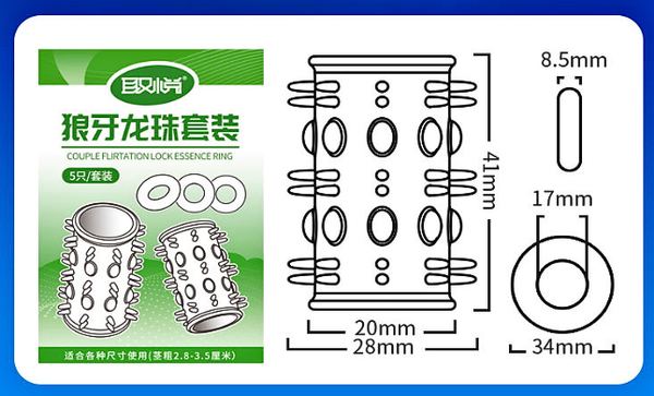 - Bộ sản phẩm gồm: 2 Đoạn bao có hạt nổi lớn và gai mềm và 3 vòng đeo với 3 kích cỡ khác nhau