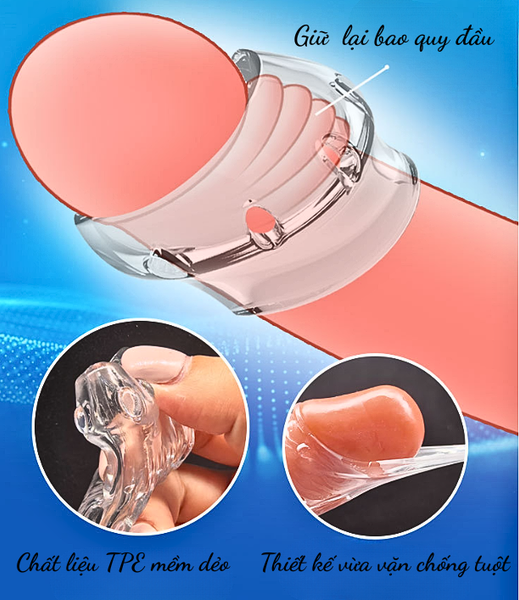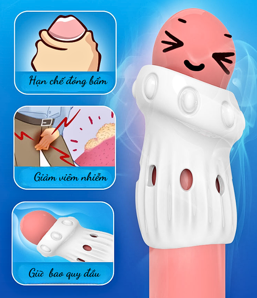 - Chức Năng Hỗ Trợ (Ngăn Bao Quy Đầu Tuột): Chức năng nguyên bản của sản phẩm là “Vòng kháng”. Khi đeo, nó tạo ra một rào cản vật lý, giữ cho lớp da bao quy đầu không trượt lên che mất phần quy đầu. Điều này giúp nam giới duy trì trạng thái “lộ thiên” trong suốt cuộc yêu, tăng cường sự nhạy cảm và tự tin.