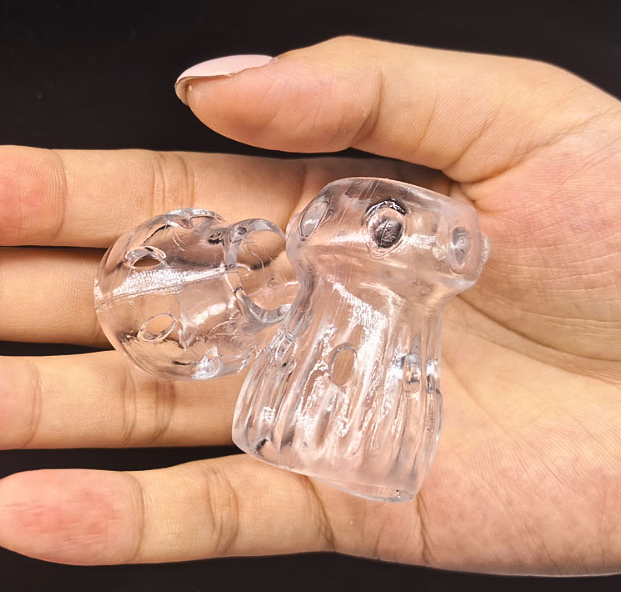 - Thiết Kế Hở Đầu: Đây là chi tiết đắt giá nhất. Cả hai bộ phận đều hoàn toàn để hở phần đỉnh quy đầu, đảm bảo người đeo không bị mất đi cảm giác chân thật nhất khi tiếp xúc trực tiếp với bạn tình.